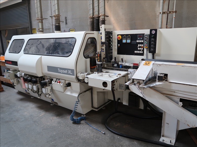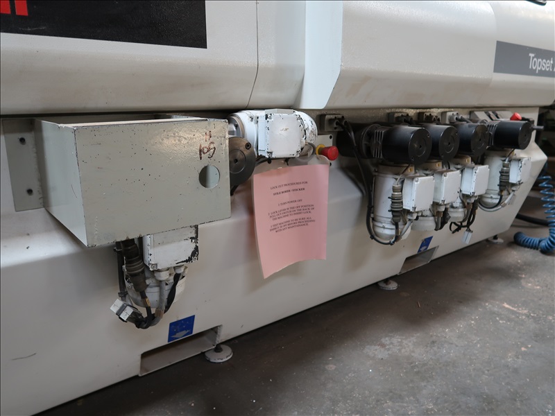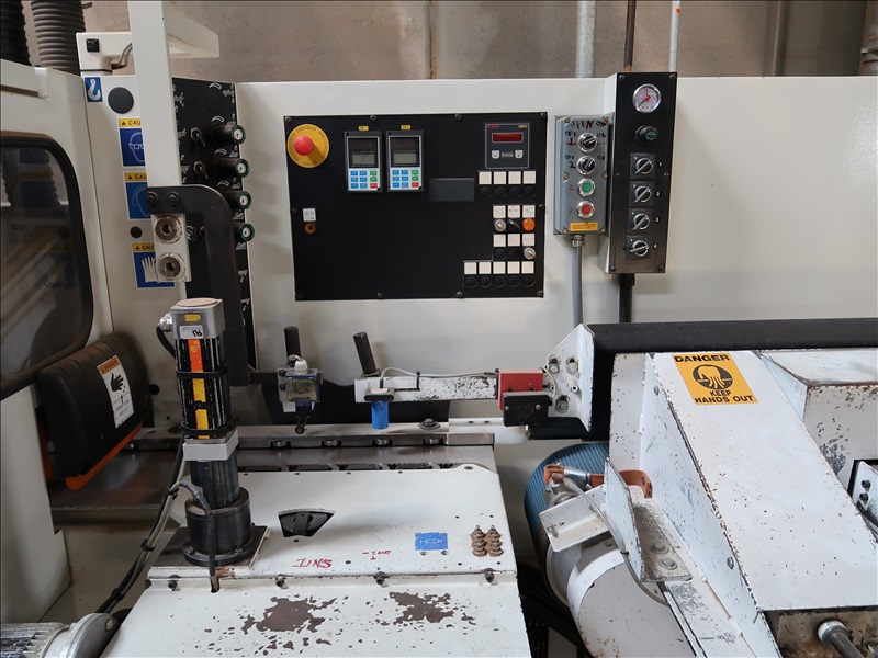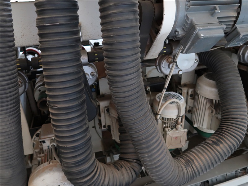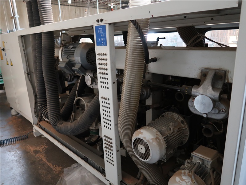 MOULDER, 6-HEADS, 130MM X 230MM MAX CAPACITIES, 6-36 M/M, HSK QUICK CHANGE SPINDLES, JUMP RABBIT 3RD SPINDLE, 1ST BOTTOM HEAD 11KW, (3) SIDE HEADS 5.5KW, TOP HEAD 11KW, 2ND BOTTOM HEAD 11KW DRIVE, 2.6KW FEED ASSEMBLY DRIVE, 1-13/16 SPINDLES, 6,000-8,000 RPM, AUTO BRAKING, DIGITAL TOOL POSITIONING, 7"X102" INFEED W/VARIABLE SPEED DRIVE