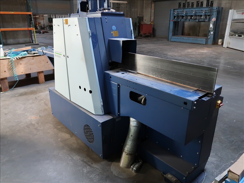 THIN CUT FRAME SAW W/MULTI-BLADE VERTICAL FRAME, 210MM STROKE OF SAW, 400 SPM, 80-250MM HEIGHT & 53-130MM WIDTH CAPACITIES, 2MM MIN. THICKNESS, (6) SPARE MULTI-BLADE VERTICAL FRAMES, (14) BOXES OF SAWS