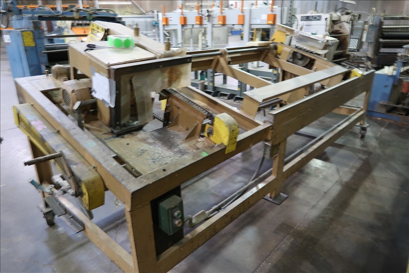 CUSTOM BUILT 8' 2-SAW P.E.T. SAW W/APPROX 5 HP/3,500 RPM MOTORS, APPROX 36" FEED THRU CHAINS W/BALDOR 3/4 HP MOTOR