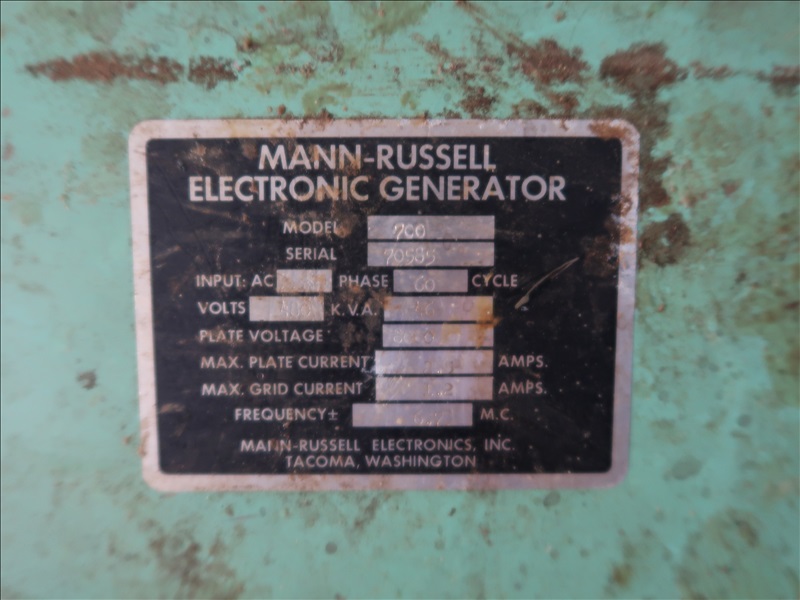 RF BATCH LUMBER EDGE GLUER, 46KW GENERATOR, 8,000V BED PLATE, 46"X96" CAPACITIES, 51"X100" APPLICATOR TUNNEL