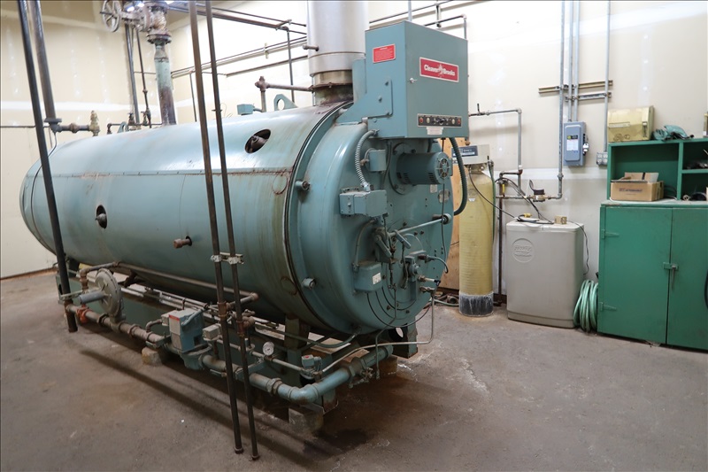 NATURAL GAS FIRED PACKAGE BOILER, 100 PSI OPERATING PRESSURE, 4,185,000 BTU INPUT, CLEAVER BROOKS DS31A BOILER FEED SYSTEM, WATER MAKE UP SYSTEM W/PENN 250 PSI SEPARATOR, ECOWATER ELECTRONIC WATER DEMAND SYSTEM