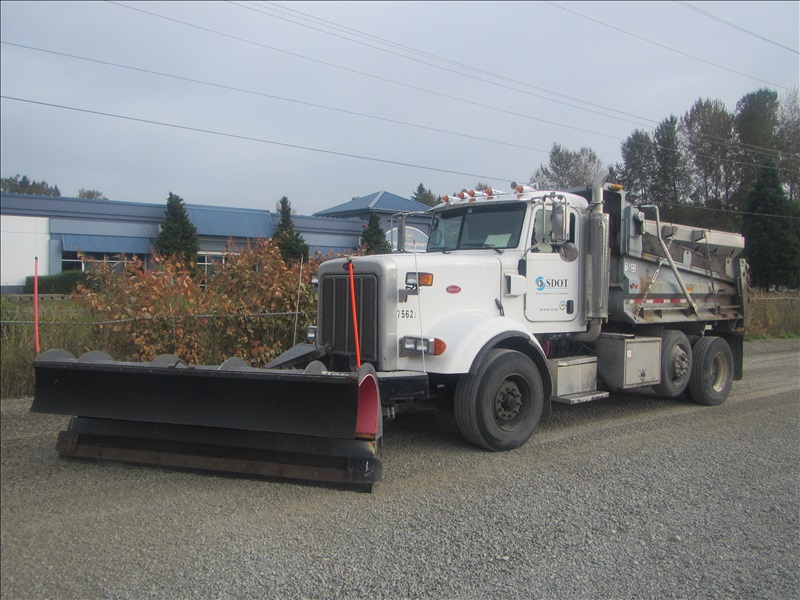 T/A DUMP TRUCK, 11' STEEL BOX, TARP SYSTEM, TAILGATE, HENKE SNOW PLOW, SWENSON SPREADER, LOADMAN SCALE, CAT C13 ACERT, AIR SUSPENTION, 187" W/B, 16,000 LB FRONT, 20,000 LB REARS, DROP AXLE