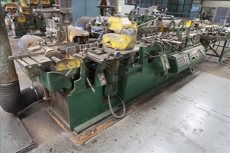 MOULDER, 6-HEADS, APPROX. 4"X8" CAPACITIES, 15 HP 1ST & 2ND BOTTOM HEADS, 15 HP TOP HEAD, 15 HP 1ST RIGHT SIDE HEAD, 10 HP 2ND RIGHT SIDE HEAD & 10 HP LEFT SIDE HEAD, FREQUENCY DRIVE, HYDRAULIC DRIVEN FEED ROLLS W/5 HP HYDRAULIC UNIT, APPROX. 8' SINGLE HEAD MOULDER FEED TABLE, JOINTER BARS, SPARE PARTS, SPIDER, ELECTRICS, SOUND BLANKETS (SPARE HEADS, SAWS & COLLARS SOLD SEPARATELY)