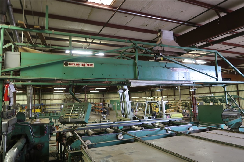 RIP SAW SYSTEM W/DUAL SIZING HEADS, MULTI RIP SAW SAW ARBOR W/APPROX. 50 HP MOTOR, POWERED FEED ROLLS, HOLD DOWN ROLLS, P.I.W. 6-SHIFTING SAW SETWORKS, SHADOW BOX, INFEED ROLLCASE & TRANSFERS, OUTFEED BELT TRANSFER & (2) 25' 4-STRAND 81X OUTFEED TRANSFERS, SPARE PARTS