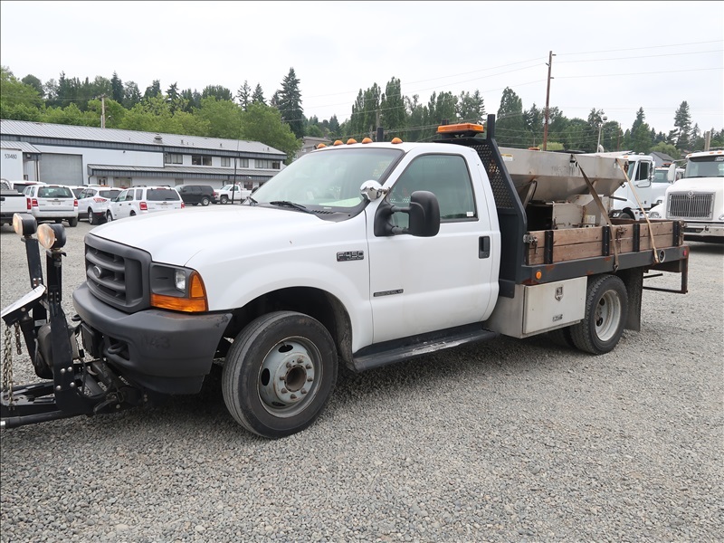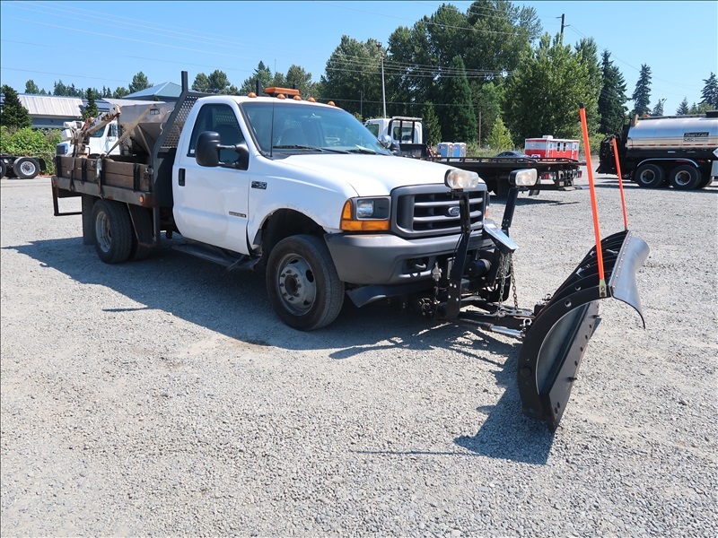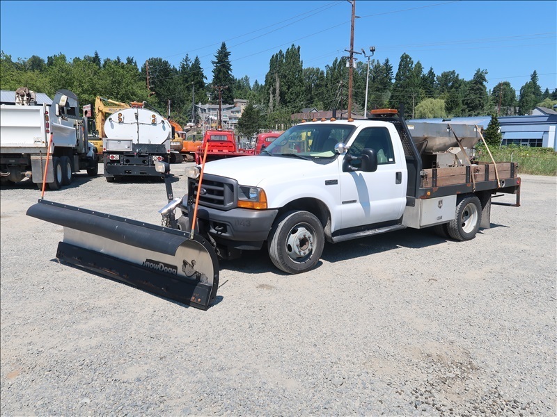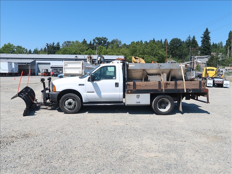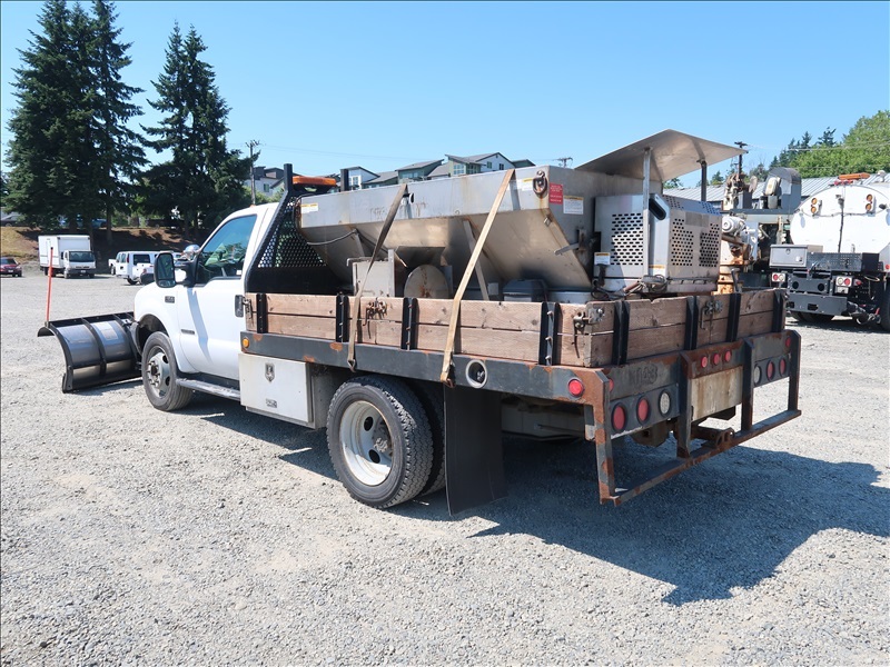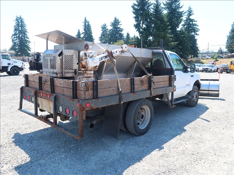 10' FLATBED, BUYERS SNOWDOGG EX90 9' SNOW PLOW, SNOW-WAY SANDER, LIFTMOORE CRANE, POWER STROKE, AUTO (SNOW PLOW NEEDS REPAIRS, WIRING ISSUE)