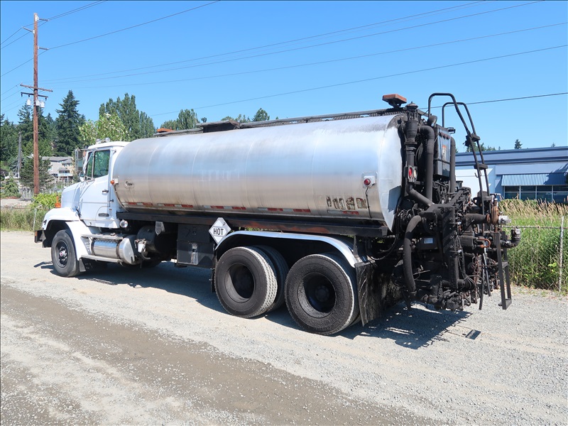 T/A ASPHALT DISTRIBUTOR TRUCK, BEAR CAT 4,000 GAL TANK W/CAB CONTROLS, FOLDING SPRAY BAR, CAT 3406, 8LL SPD, 12,000 LB FRONT, 36,000 LB REARS