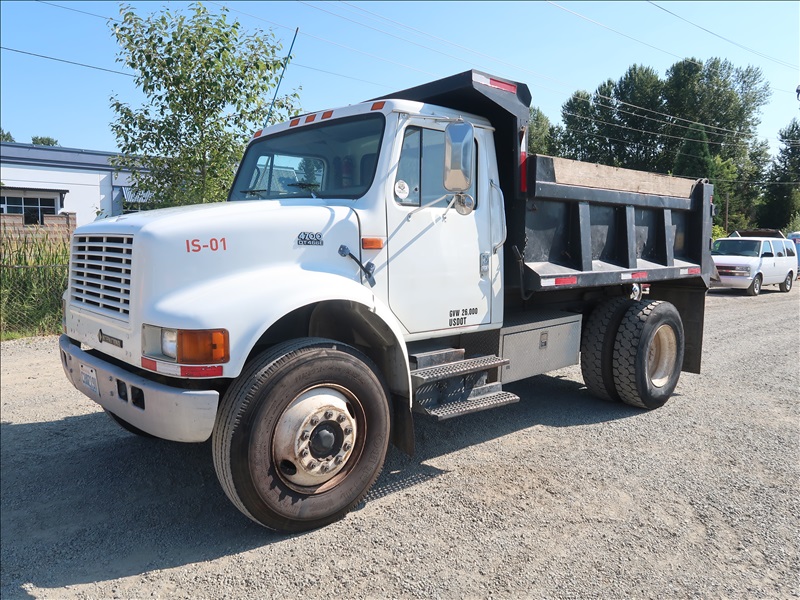 DUMP TRUCK, 10' STEEL BOX, ASPHALT GATE, DT466E, 6 SPD, 152" W/B