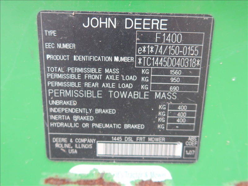 72" ROTARY FRONT MOWER, YANMAR 3TNV82A-O