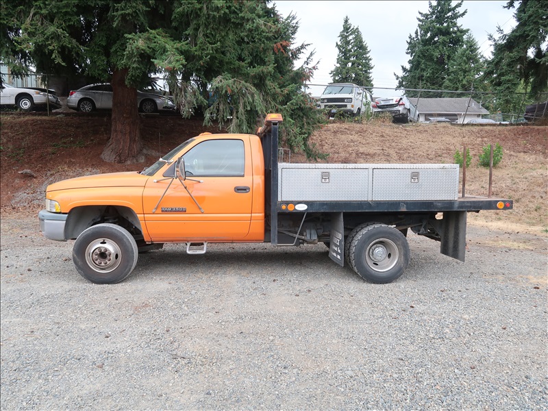 10' FLATBED DUMP, CUMMINS, AUTO (CITY DISCLOSURE: SUSPENSION & STEERING ISSUES)