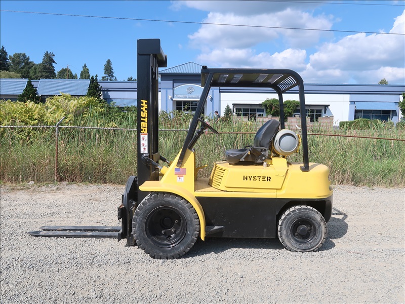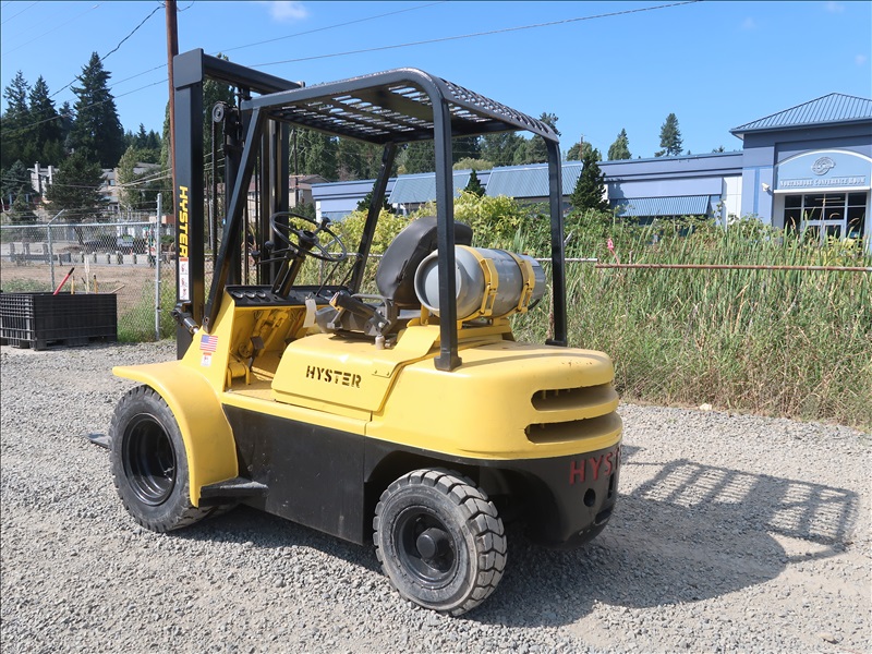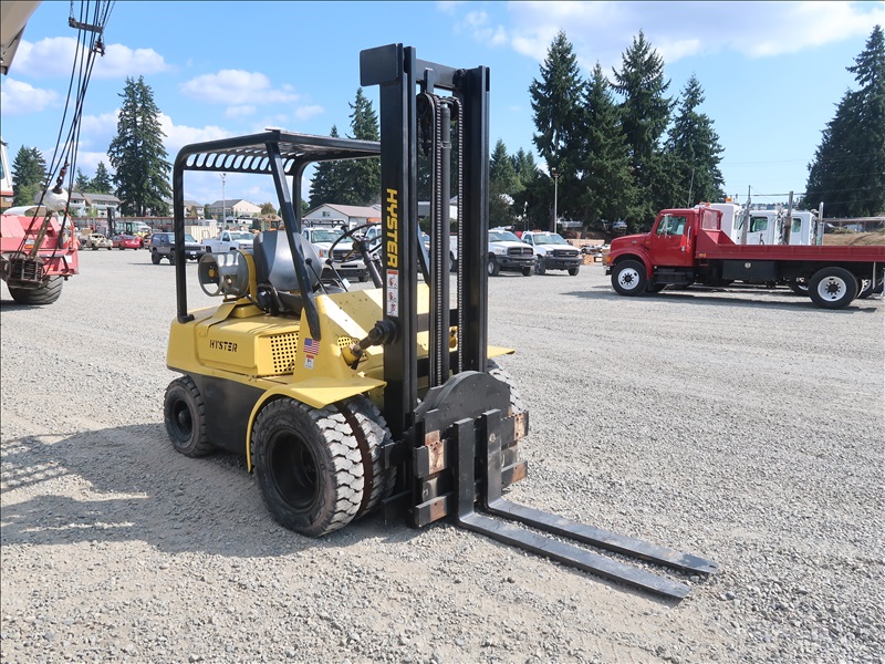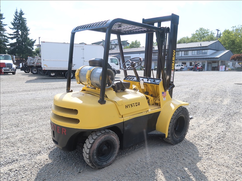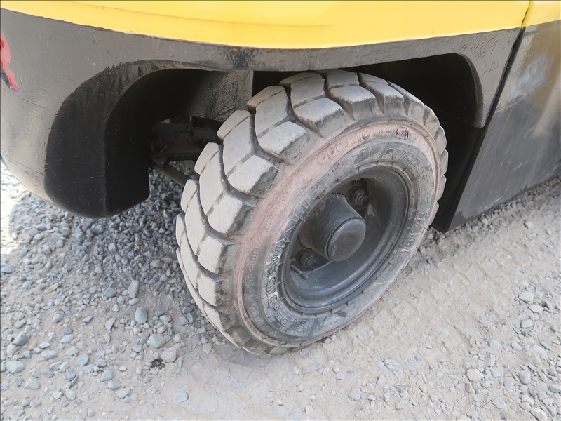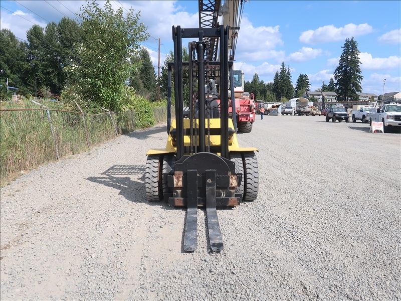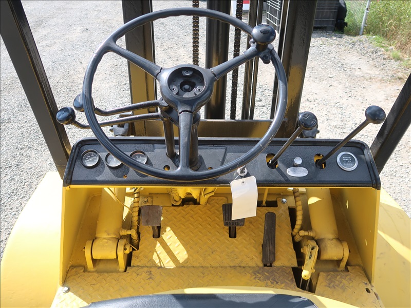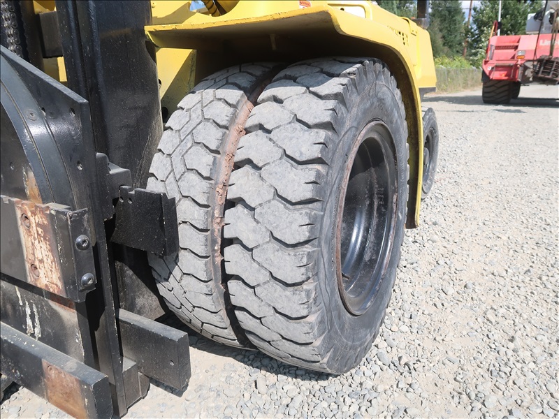 DUAL PNEUMATIC TIRE FORKLIFT, 147" FORK HEIGHT, 2-STAGE MAST, FORK ROTATOR, 4 CYL LPG (LIFT CYLINDER LEAKS)