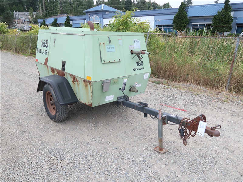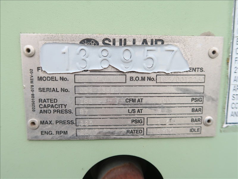 S/A 185 CFM TRAILER MOUNTED AIR COMPRESSOR, JOHN DEERE 4045DF-150B 4 CYL DIESEL, 205/75D15 (RUNS & OPERATES)