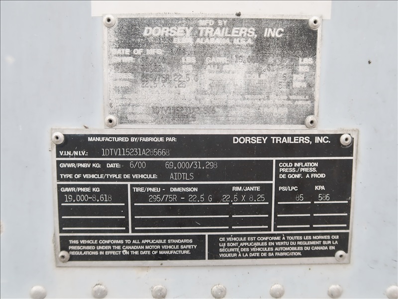 TRI/A 53' 69,000 LB GVWR VAN TRAILER, SPRING SUSPENSION, A/B, BARN DOORS, 295/75R22.5