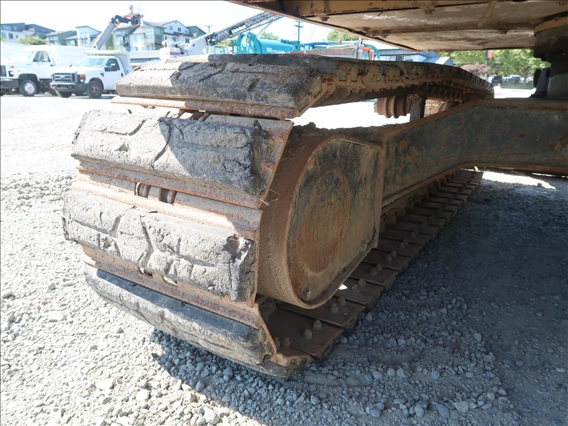 HYDRAULIC EXCAVATOR, MITSUBISHI 4 CYL DIESEL, 5'5" STICK, HYD THUMB, 35" BUCKET, BLADE, TRACK PADS, A/C CAB