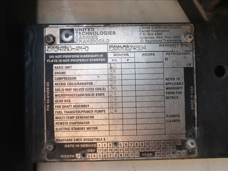 T/A 53' REFRIGERATED VAN TRAILER, 65,000 LB GVWR, SPRING SUSPENSION, A/B, CARRIER ULTRAFRESH 2DL REFRIGERATION UNIT, BARN DOORS, 295/75R22.5