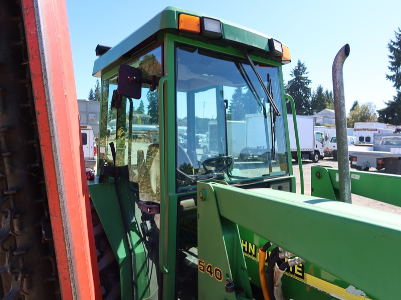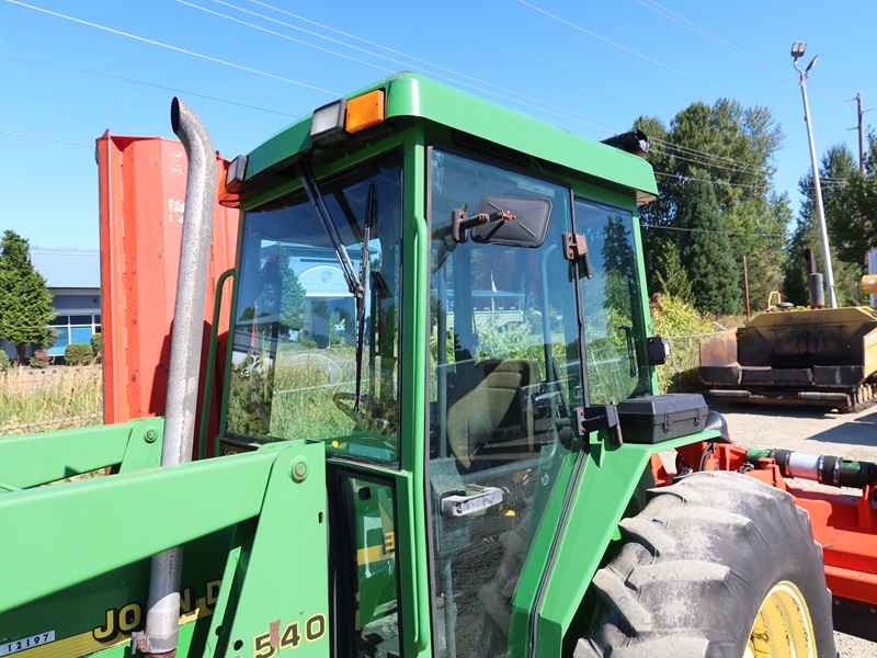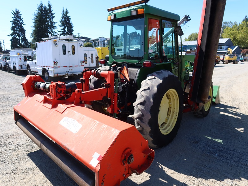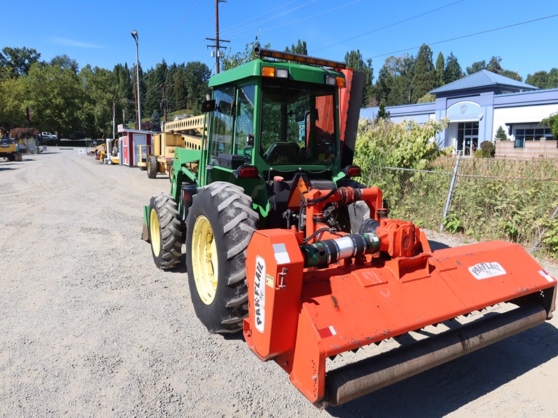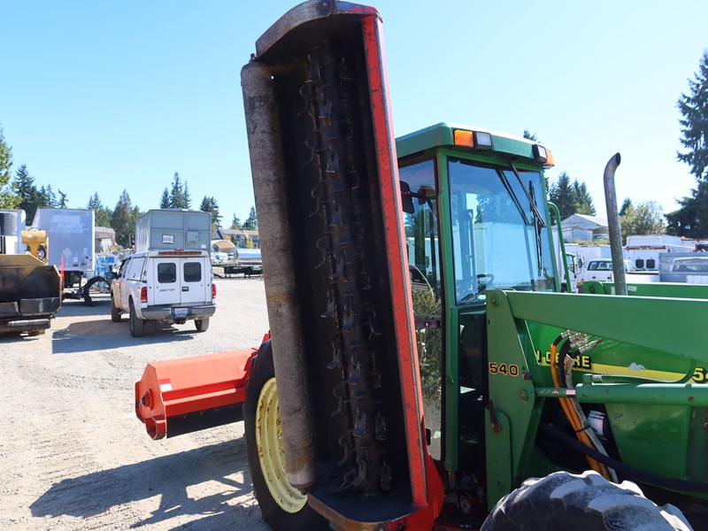 MFWD TRACOT, 81 HP 4045D, 12F/12R POWER REVERSER, 540 LOADER BUCKET, (4) REMOTES, PTO, 3 POINT HITCH, EDWARDS 78" FLAIL SHOULDER MOWER, REARS IFA96PK960 PTO DRIVEN 3 POINT 100" FLAIL MOWER, A/C CAB