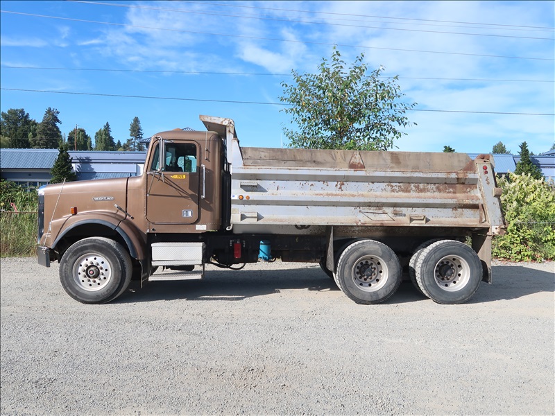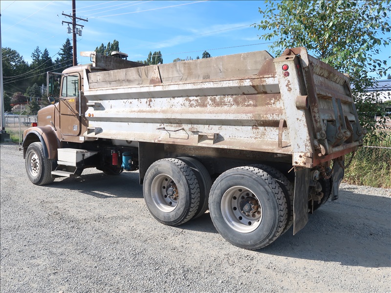 T/A DUMP TRUCK, 14'6" STEEL BOX, ASPHALT GATES, CAT 3406B, AUTO, SPRING BEAM SUSPENSION, 196" W/B