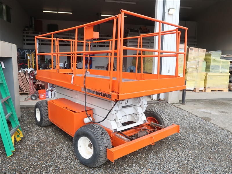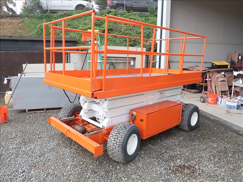 25' 1,250 LB SCISSOR LIFT, 24V W/BATTERY CHARGER (WORKS & OPERATES, HOURS UNKNOWN)