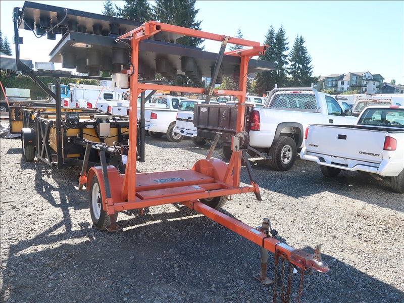 S/A TRAILER MOUNTED SOLAR ARROW BOARD, 205/75D-15 (WORKS, MISSING TRAILER LIGHT PLUG)