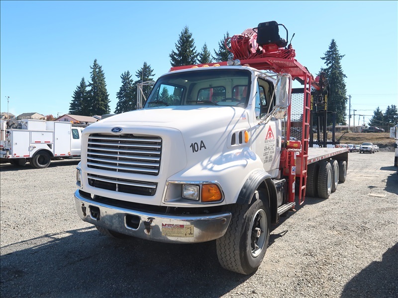 T/A CRANE TRUCK, FASSI F230SE, MATERIAL LOADER, PALLET FORKS, HYD OUTRIGGERS, 405 HP CAT C12, 8LL SPD, SPRING BEAM SUSPENSION, TAG/A