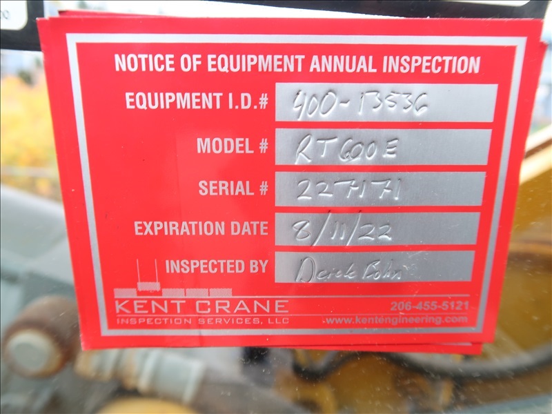 4X4X4 50-TON ROUGH TERRAIN CRANE, 33' - 105' 4-SECTION BOOM, 29' - 51' EXTENDABLE JIB, MAIN & AUX WINCHES, ROOSTER SHEAVE, 40-TON 3-SHEAVE BLOCK, 8.3 TON HEADACHE BALL, PAT SYSTEM, CUMMINS 6.7L, A/C/HEATED CAB, 23.5-25