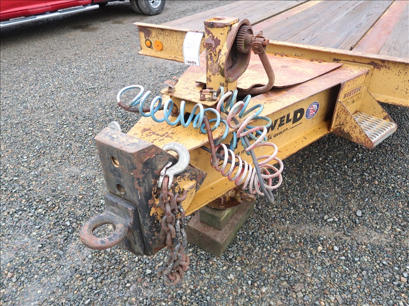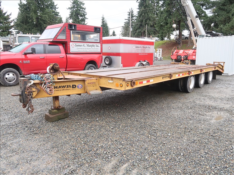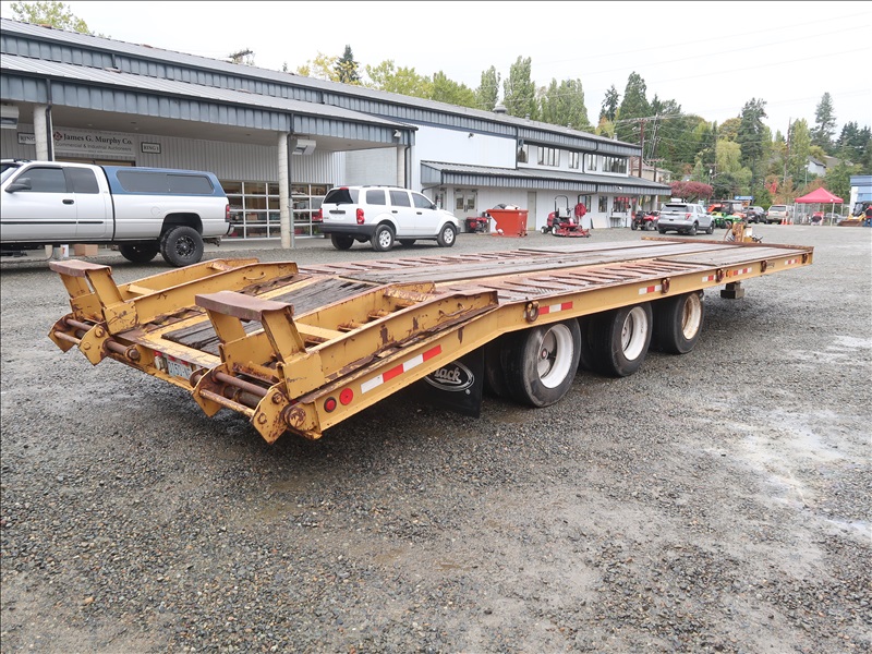 TRI/A, 29' OAL BEAVERTAIL EQUIPMENT TRAILER, 24' DECK & 5' BEAVERTAIL, SPRING SUSPENSION, A/B, RAMPS, 215/75R17.5