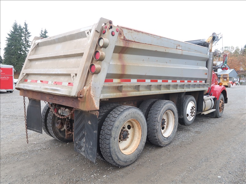TRI/A DUMP TRUCK, 16' STEEL BOX, TARP SYSTEM, 435 HP CAT C15, 18 SPD, HAULMAXX SUSPENSION, 215" W/B, 14,600 LB FRONT, 46,000 LB REARS, 4.30 RATIO, PLUMBED FOR PUP, DBL REAR LOCKERS, DBL FRAME
