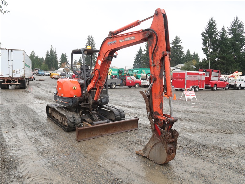 HYDRAULIC EXCAVATOR, 47 HP V2403M, SWING BOOM, HYD THUMB, QC 10" BUCKET, AUX HYD, RUBBER TRACKS, CANOPY