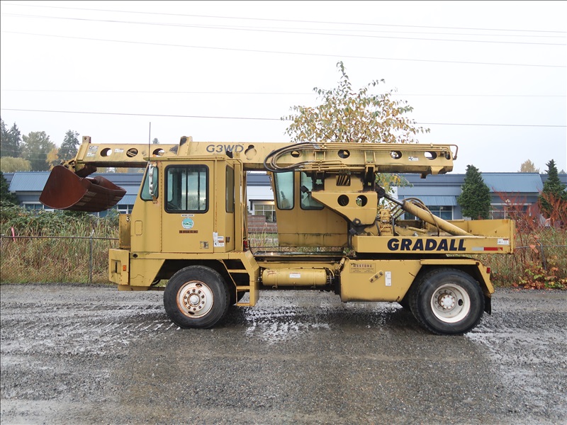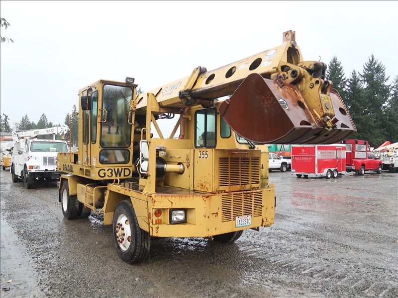 4X2 WHEEL EXCAVATOR, CUMMINS 6 CYL DIESEL, 6F/3R AUTO, 48" CLEANOUT BUCKET, CAB (BRAKES NEED REPAIR)