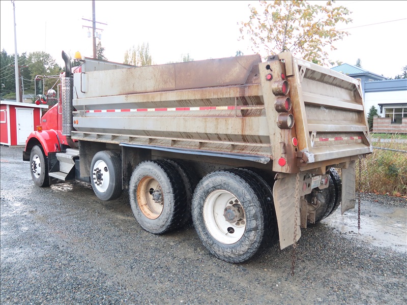 TRI/A, DUMP TRUCK, 15' STEEL BOX, 435 HP, CAT C15, 18 SPD, HAULMAXX SUSPENSION, 215" W/B, 14,600 LB FRONT, 46,000 LB REARS, 4.30 RATIO, DROP AXLE, PLUMBED FOR PUP, DBL LOCKERS, DBL FRAME