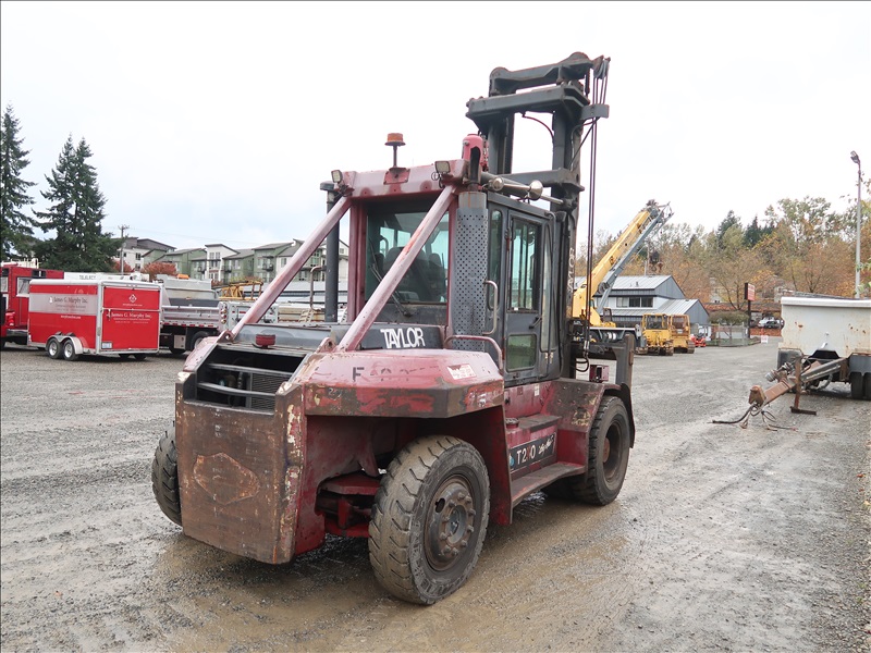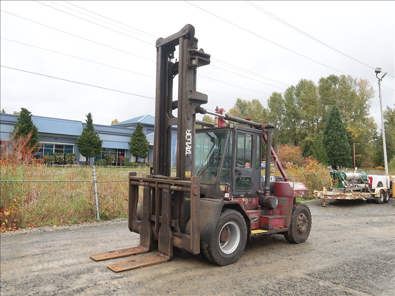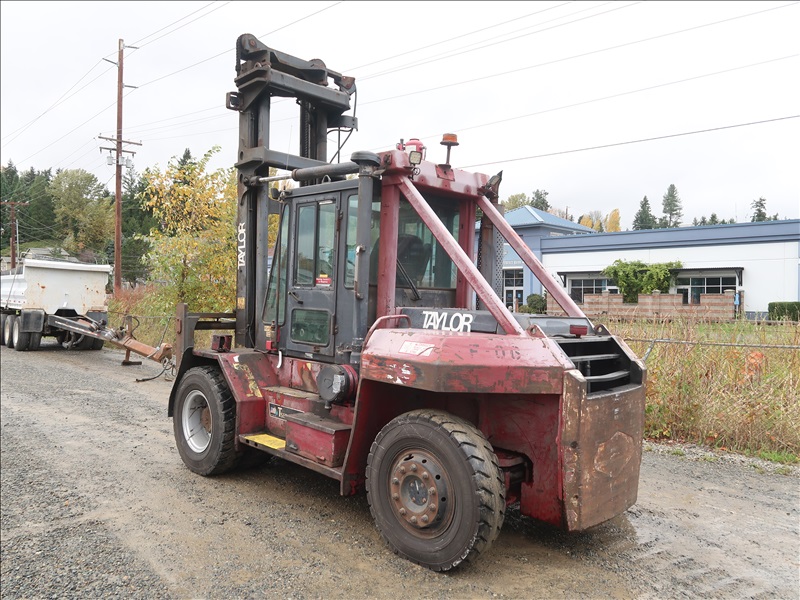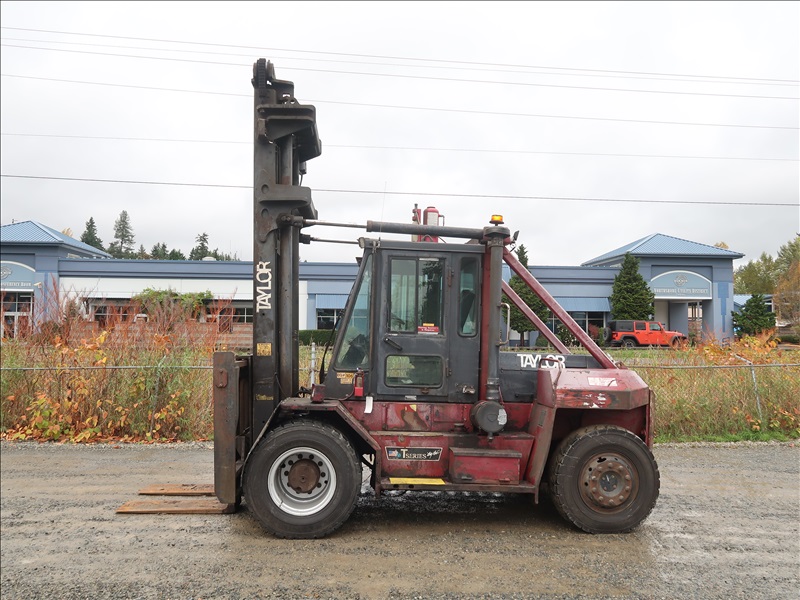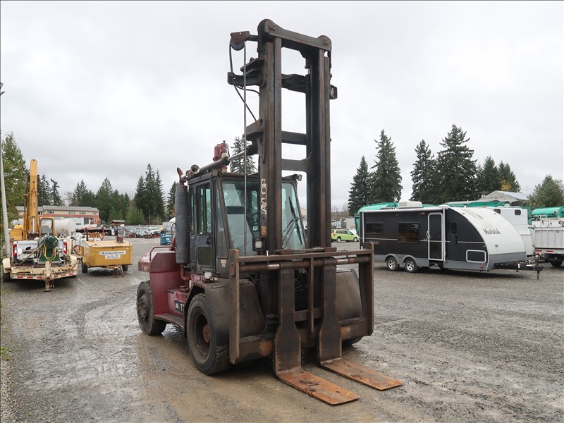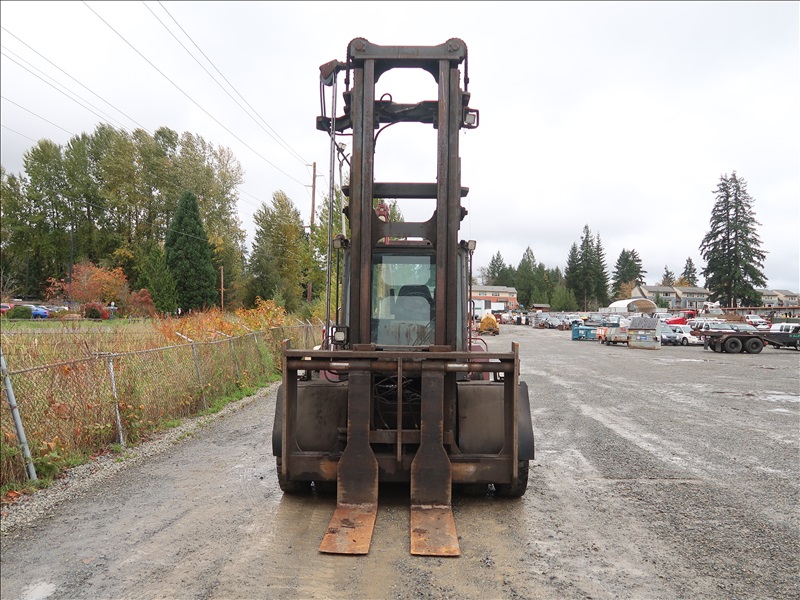 22,200 LB DUAL PNEUMATIC TIRE FORKLIFT, 216" FORK HEIGHT, 2-STAGE MAST, SIDE SHIFT, LUMBER FORKS, CUMMINS 6 CYL DIESEL, FIRE SUPPRESSION SYSTEM, CAB