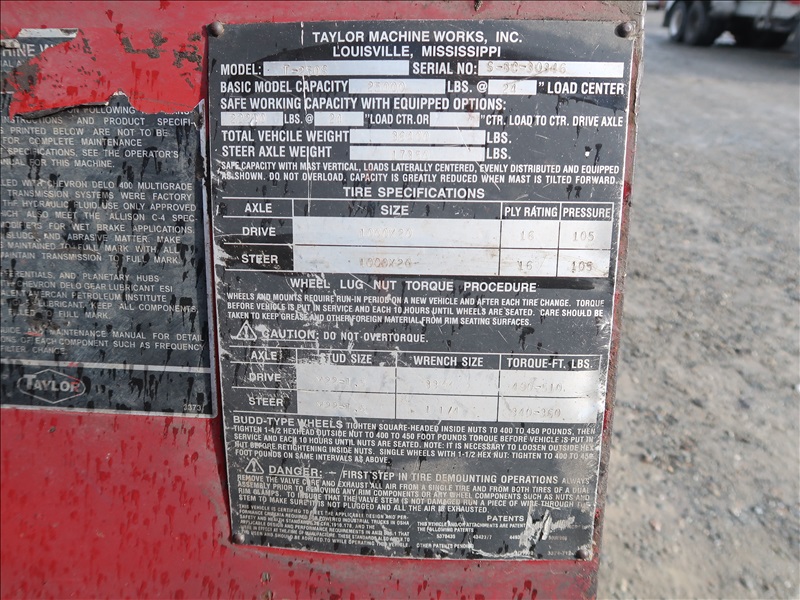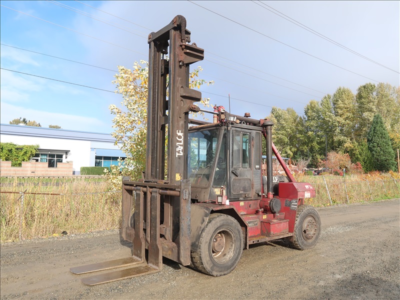 22,200 LB DUAL PNEUMATIC TIRE FORKLIFT, 216" FORK HEIGHT, 2-STAGE MAST, SIDE SHIFT, LUMBER FORKS, CUMMINS 6 CYL DIESEL, FIRE SUPPRESSION SYSTEM, CAB