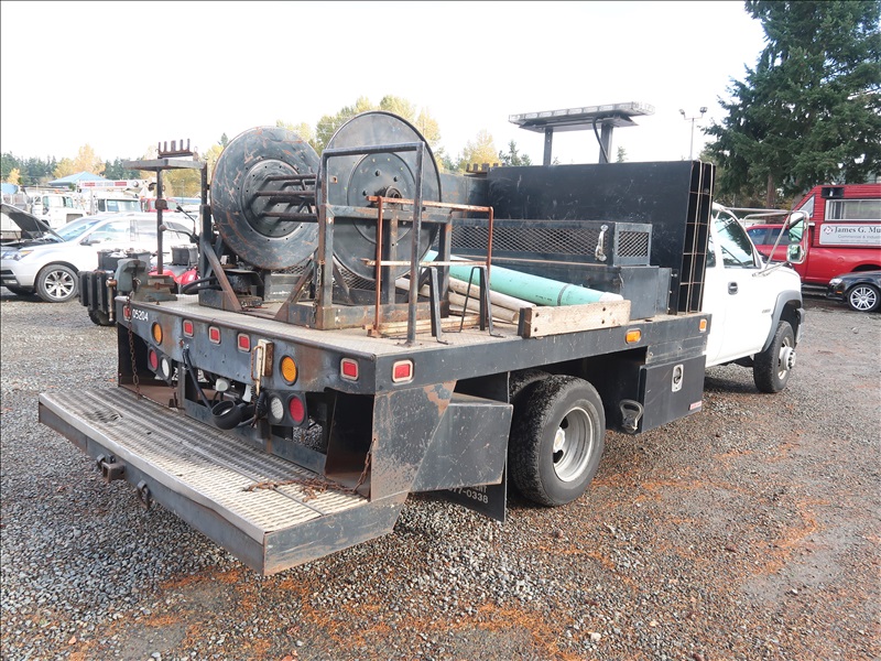 EXT CAB 9' FLATBED, HANNAY HYD DRIVEN REEL, V8, AUTO