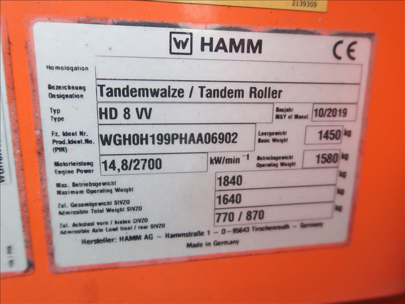 TANDEM VIBRATORY ROLLER, 31.5" SMOOTH DRUMS, KUBOTA D1005, WATER SYSTEM