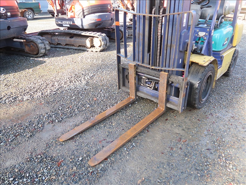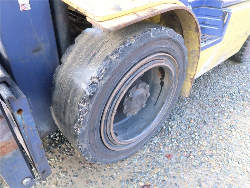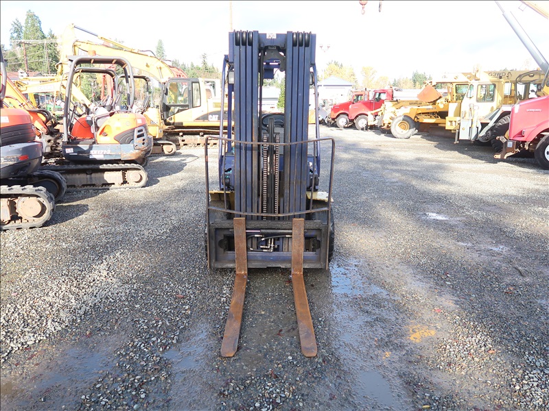 2,150 LB SOLID CUSHION TIRE FORKLIFT, 240" FORK HEIGHT, 4-STAGE MAST, SIDE SHIFT, NISSAN 4 CYL LPG (PROPANE TANK IS NOT INCLUDED)