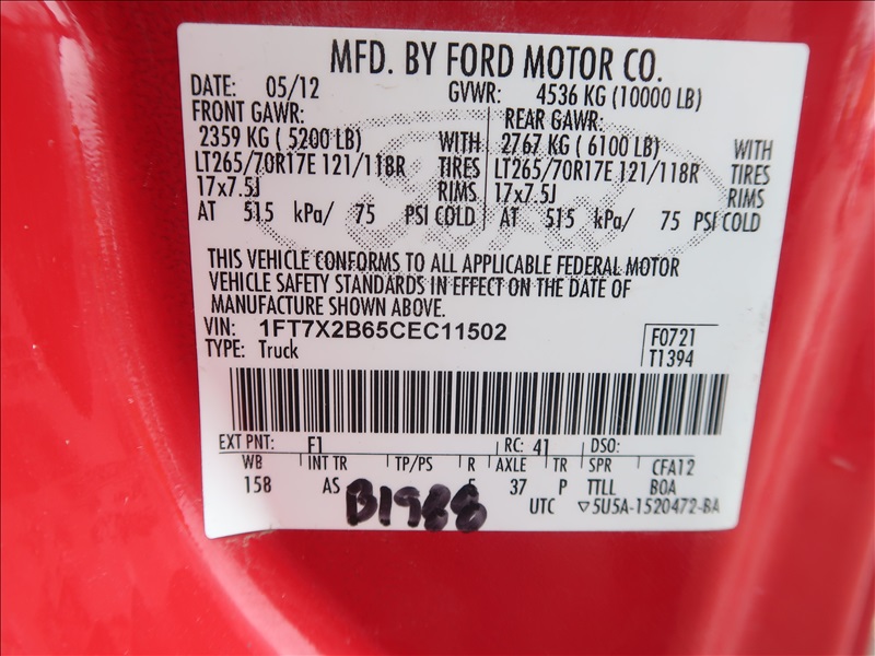 2012 FORD F250 EXT CAB SERVICE BODY 4WD