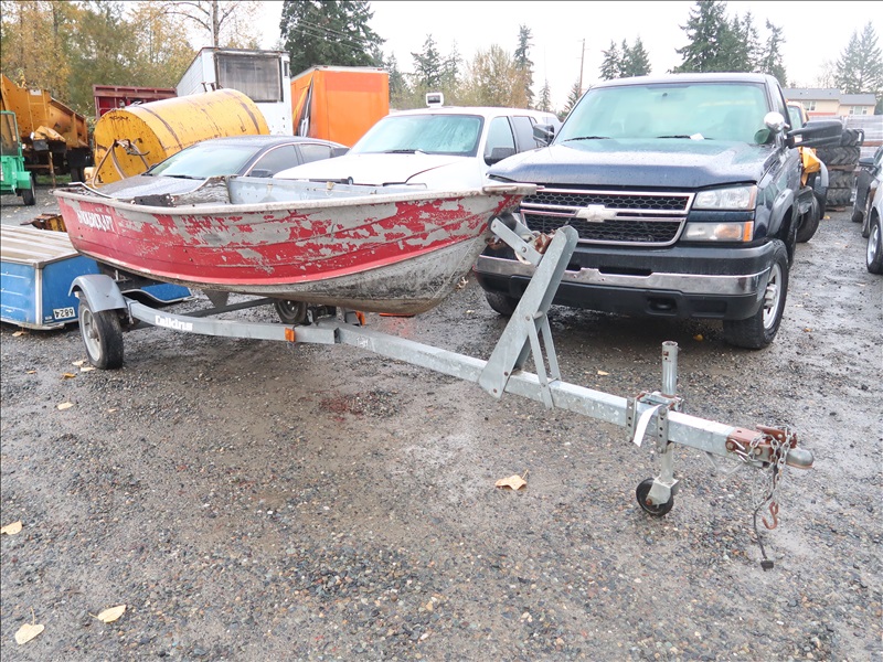 12' GALVANIZED BOAT TRAILER (NEEDS REPAIR, NOT ROAD WORTHY, PLEASE PREVIEW)