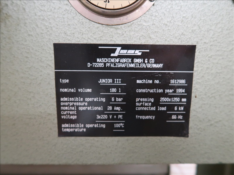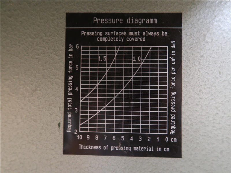 49"X98" HOT VENEER PRESS, 2500MM X 1250MM PRESSING SURFACE PLATTENS, 3X, 220V, 60HZ, 3-PHASE