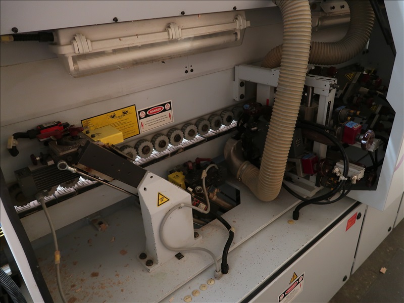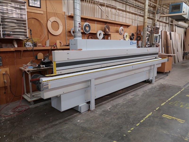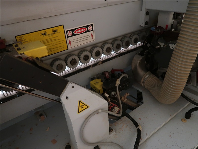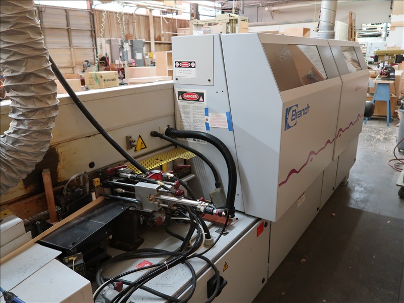 21' SINGLE SIDED EDGE BANDER, DIAMOND PRE-MILL, TWO GLUE POTS, 3MM PVC CAPABLE, BRANDT ELECTRONICS, 208/230V, 60HZ, 3-PHASE