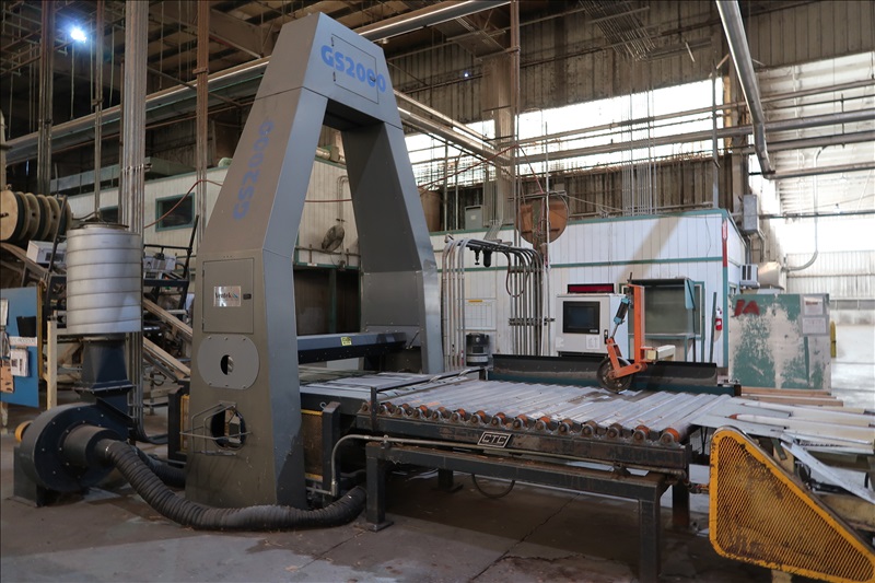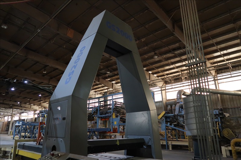 DRY END VENEER SCANNER W/2-SECTION 36" 4-STRAND X 4" BELT FEED THRU, 7-1/2 HP SCANNER BLOWER, 58"X6' CANTED EVEN END ROLLCASE