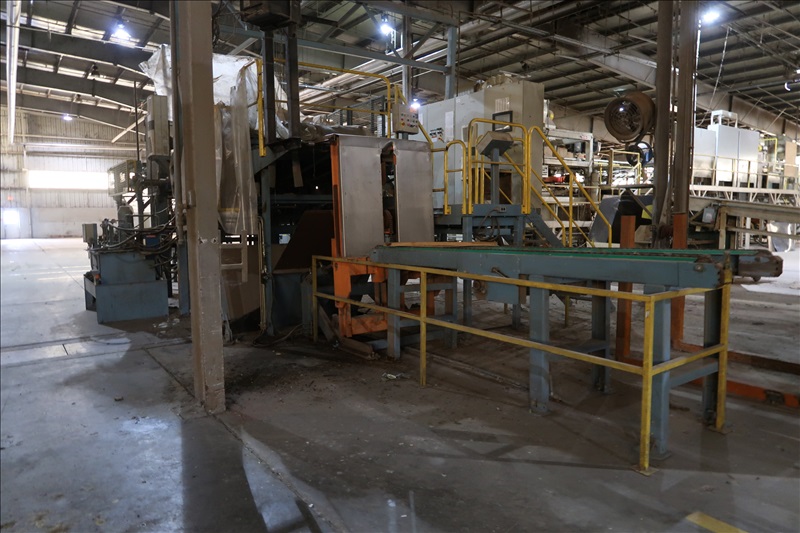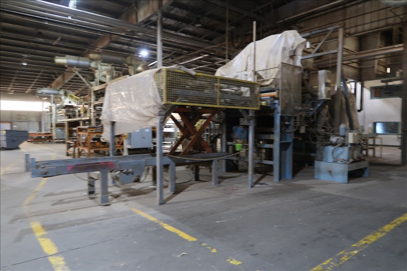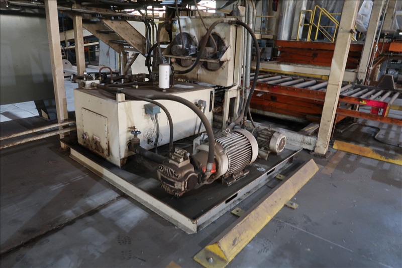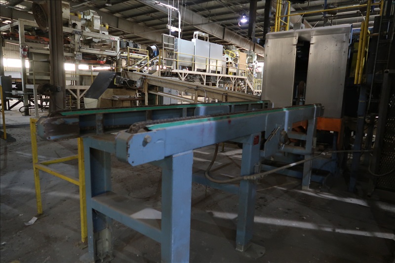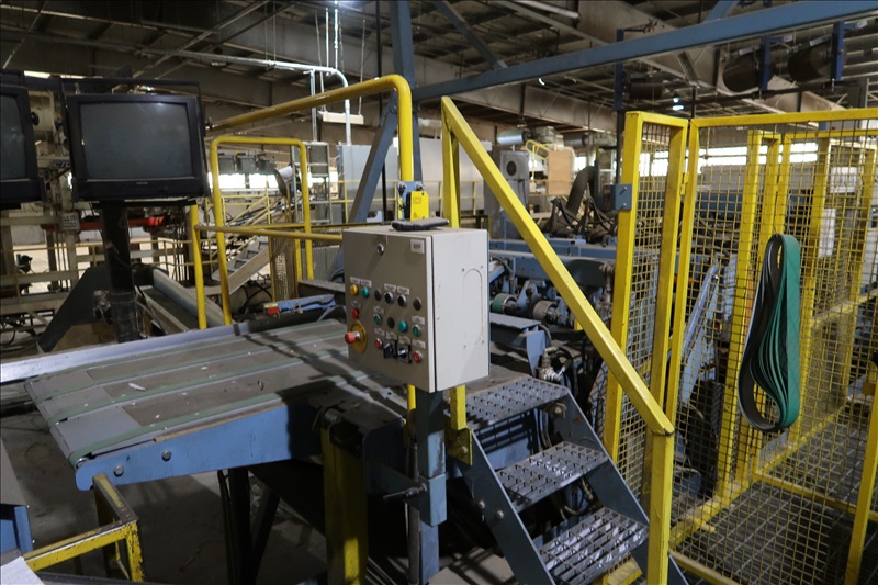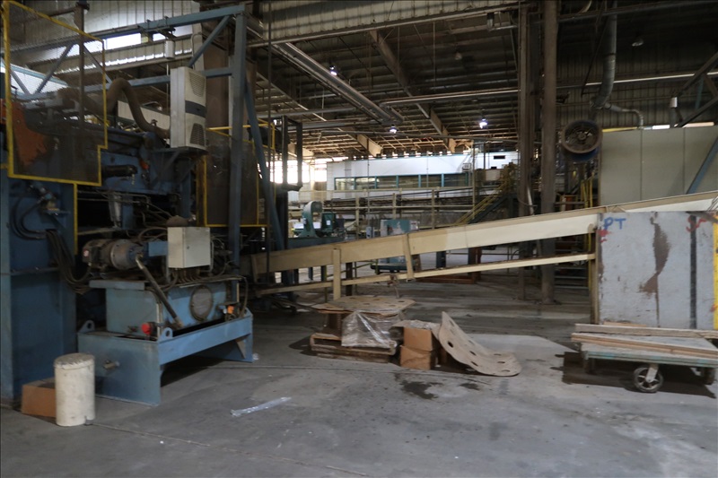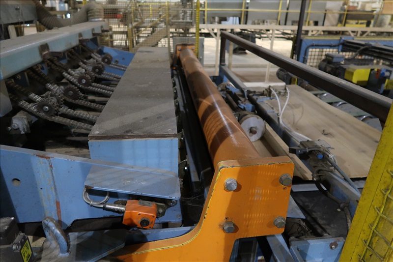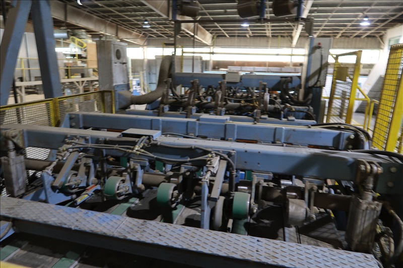 VENEER COMPOSER LINES W/12' 2-STRAND 81X INFEED TRANSFER TO 64" HYDRAULIC LIFTING FORKS, 2,000 KG CAPACITY, 1,200MM LIFT, 4-STRAND INFEED BELT W/TENSION HOLD DOWN ROLLS TO PNEUMATIC HOLD DOWN SHOES TO 1,900MM CLIPPER STATION W/OUTFEED TENSION CHAINS W/HOLD DOWN SHOES TO GLUE STATION W/NORDSON PROBLUE 10224A HOT GLUE MELT MACHINE, STRING APPLICATORS W/FEED THRU CHAINS TO RE-CLIP STATION W/OUTFEED BELTS, COOLING STATION, SINGLE BIN STACKER W/MOTORIZED BELTS, STACK ARMS & SHOES, HYDORING HYDRAULIC UNIT W/(2) 10 HP HYDRAULIC PUMPS, 18"X32" CLEAN OUT BELT, (4) CONTROL TECHNIQUES UNITROL 5-1/5 KW VSD'S, CONTROLS & ELECTRICS (2ND COMPOSER MISSING SOME COMPONENTS)