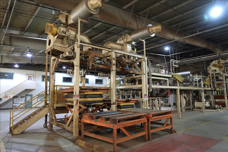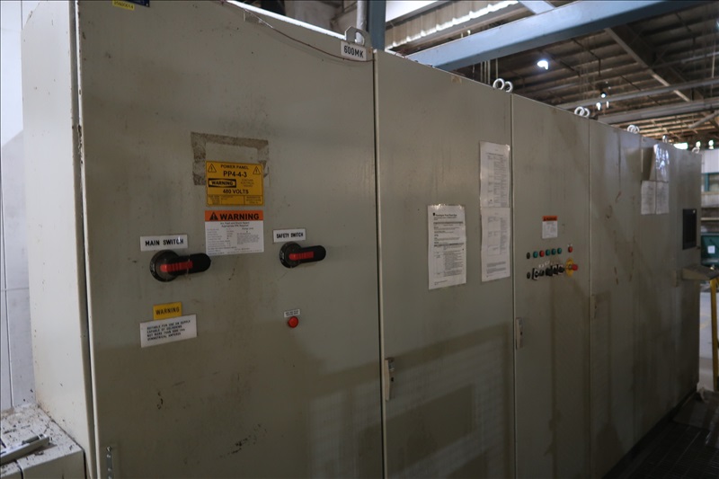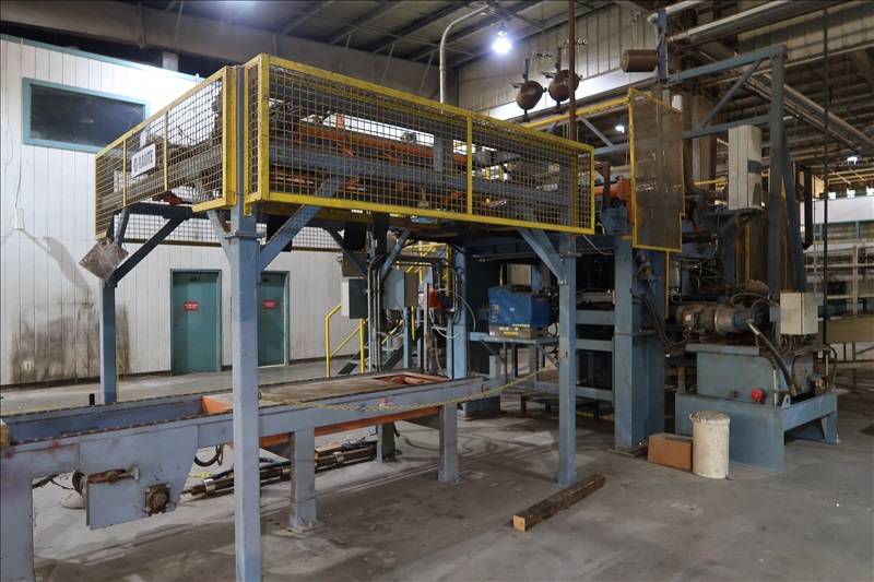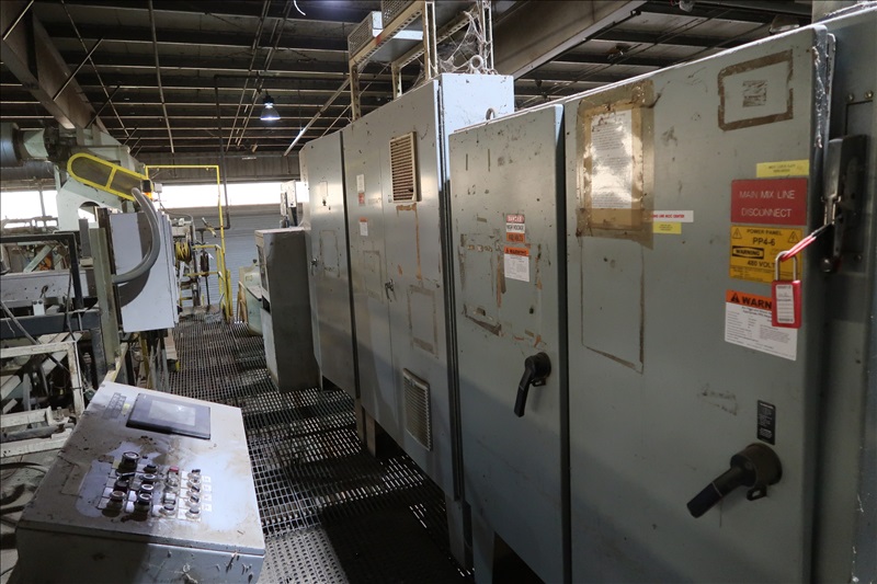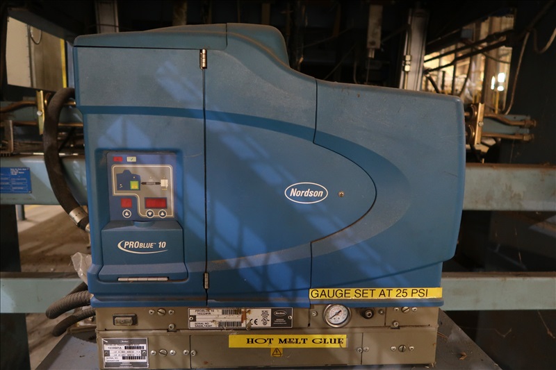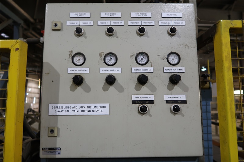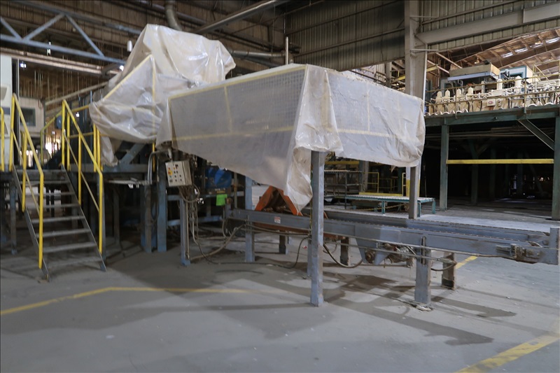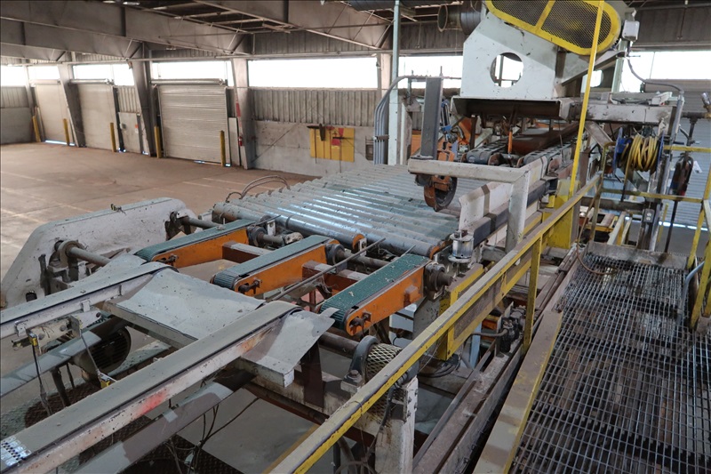 VENEER COMPOSER LINES W/12' 2-STRAND 81X INFEED TRANSFER TO 64" HYDRAULIC LIFTING FORKS, 2,000 KG CAPACITY, 1,200MM LIFT, 4-STRAND INFEED BELT W/TENSION HOLD DOWN ROLLS TO PNEUMATIC HOLD DOWN SHOES TO 1,900MM CLIPPER STATION W/OUTFEED TENSION CHAINS W/HOLD DOWN SHOES TO GLUE STATION W/NORDSON PROBLUE 10224A HOT GLUE MELT MACHINE, STRING APPLICATORS W/FEED THRU CHAINS TO RE-CLIP STATION W/OUTFEED BELTS, COOLING STATION, SINGLE BIN STACKER W/MOTORIZED BELTS, STACK ARMS & SHOES, HYDORING HYDRAULIC UNIT W/(2) 10 HP HYDRAULIC PUMPS, 18"X32" CLEAN OUT BELT, (4) CONTROL TECHNIQUES UNITROL 5-1/5 KW VSD'S, CONTROLS & ELECTRICS (2ND COMPOSER MISSING SOME COMPONENTS)
