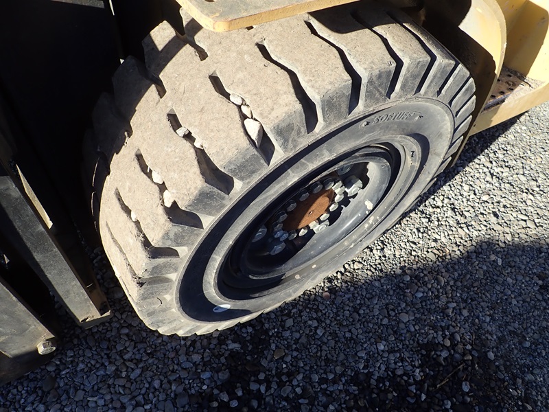 11,000 LB SOLID PNEUMATIC FORKLIFT, 6 CYL LPG, 148'' 2 STAGE MAST W/SS, 8' FORKS