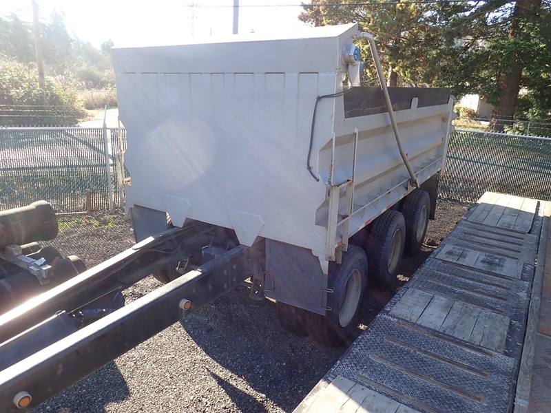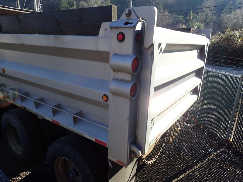 TRI/A END DUMP PUP TRAILER, EXTENDABLE REACH, SPRING SUPSENSION, 15' STEEL BOX, AUTO TARP