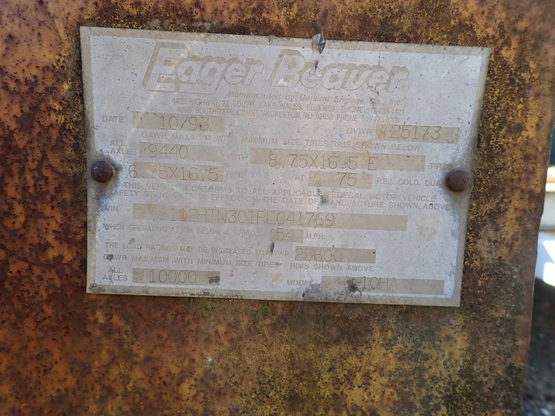 10 TON T/A EQUIPMENT TRAILER, SPRING SUSPENSION, 8' X 19' DECK, BEAVER TAIL, RAMPS, AIR BRAKES, 8.75R16.5