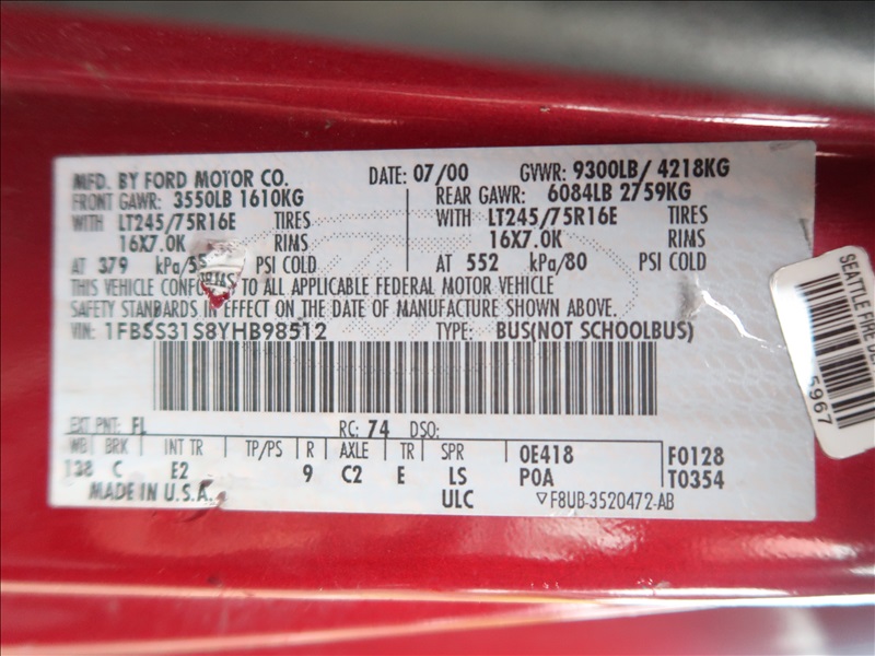 PASSENGER VAN, V10, AUTO, A/C, CRUISE, TILT, P/WDW, P/LOCK