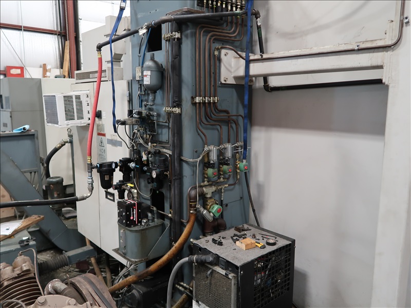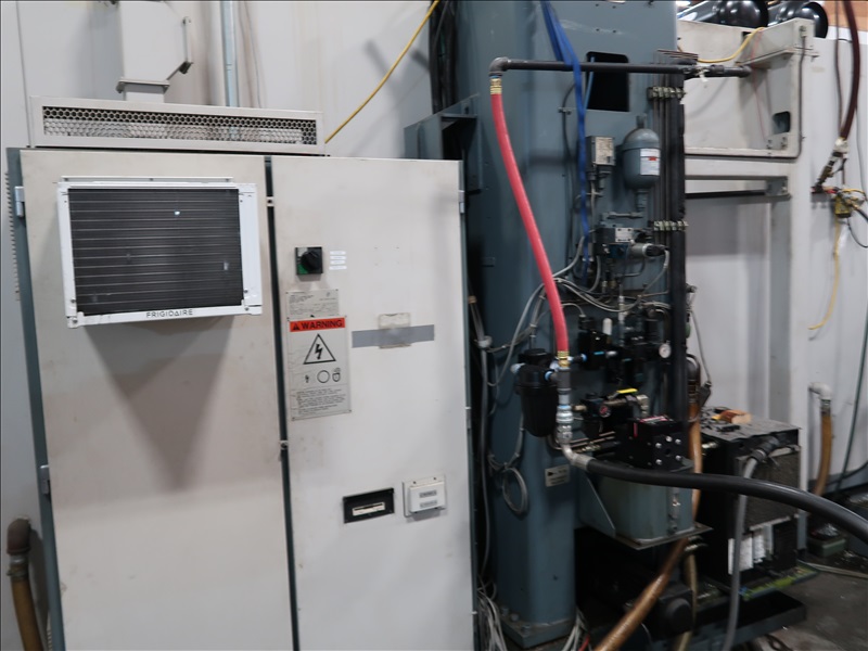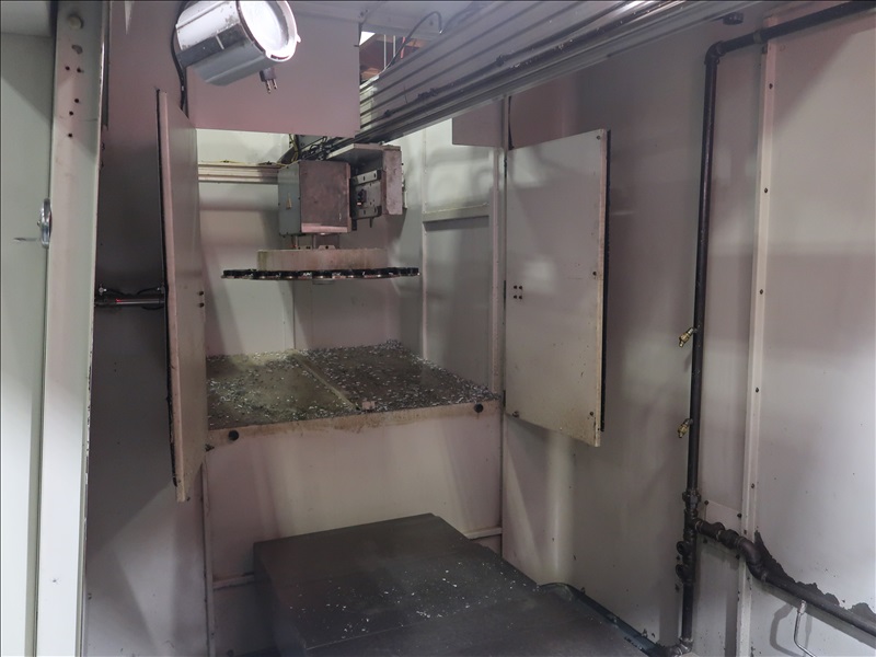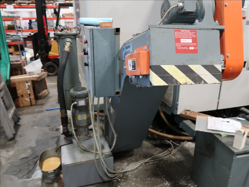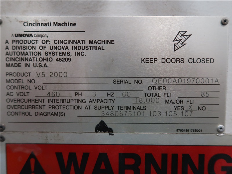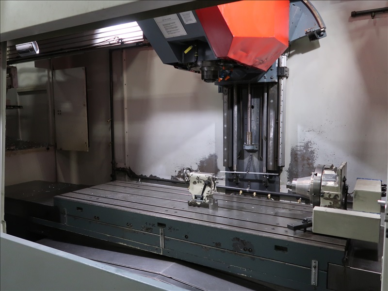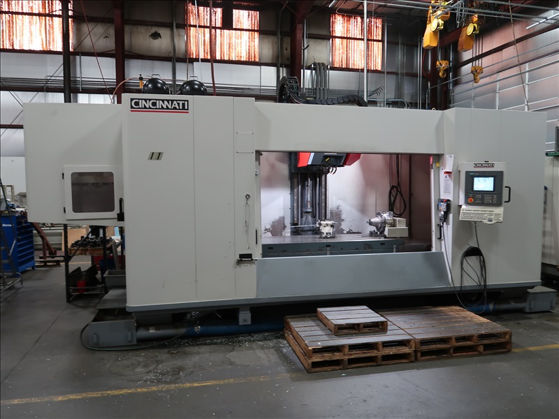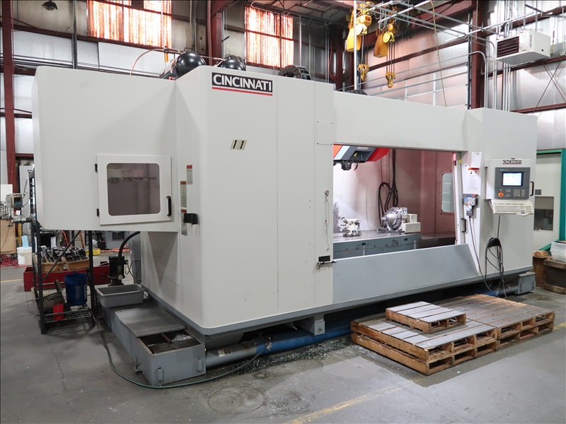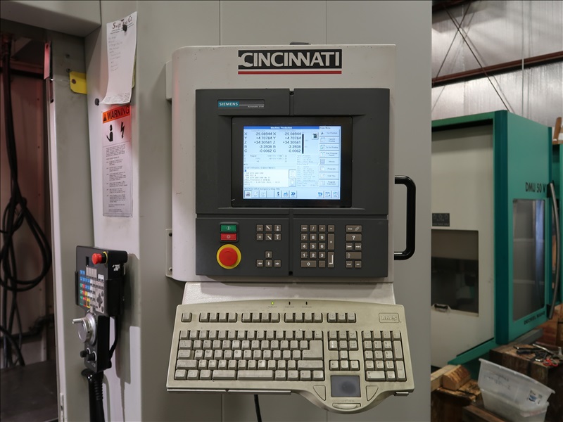 CNC VERTICAL MACHINING CENTER, HSK TOOL HOLDER, 90" X 30" T-SLOT TABLE, CINCINNATI NC-12-8 4TH AXIS W/CINCINNATI TS-12 TAIL STOCK, 21 ATC, HSK-63 COMPATIBLE TOOLING, HSK 1,500 RPM SPINDLE, (2) JORGENSEN 12" CHIP CONVEYORS, SIEMENS ACRAMATIC 2100 CONTROLS W/SIEMENS REMOTE CONTROL, 460V, 3-PHASE, 60HZ