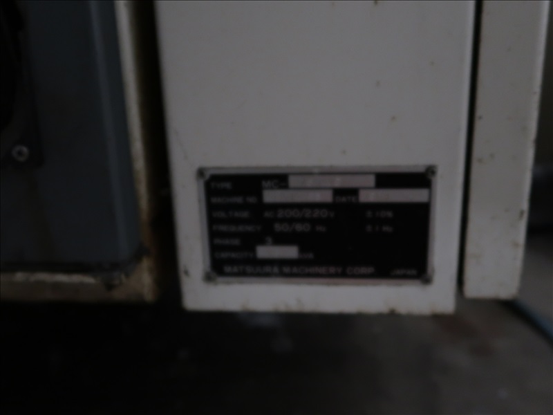 CNC VERTICAL MACHINING CENTER, 16" X 45" T-SLOT TABLE, 30 ATC, MATSUURA EN4-00429A, 200/220V, 50/60HZ, 3-PHASE