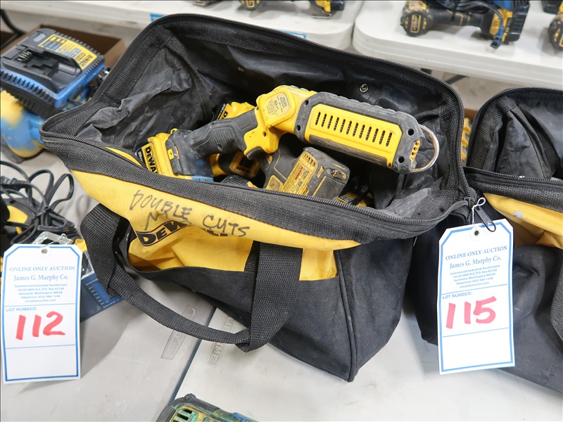 LOT, DEWALT DCD996 20V CORDLESS 1/2" HAMMERDRILL/DRILL DRIVER DCF887 1/4" IMPACT DRIVER, DCL050 WORK LIGHT W/BATTERIES, CHARGER & BAG