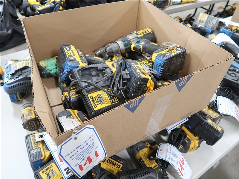 LOT, (6) ASSORTED DEWALT 20V CORDLESS DRILLS W/BATTERIES & CHARGER