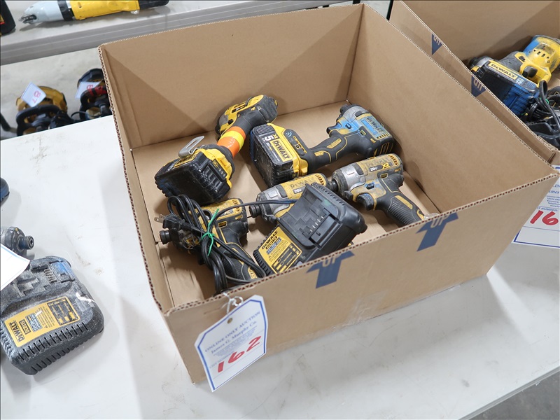 LOT, (5) ASSORTED DEWALT 20V CORDLESS 1/4" IMPACT DRIVERS W/BATTERIES & CHARGER